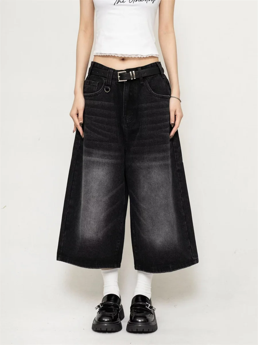 Be the first to review “High Waist Black Retro Washed Denim Shorts Women’s Harajuku Vintage Fashion Casual Loose Y2K Streetwear Mid Long Wide Leg Pants” Cancel reply